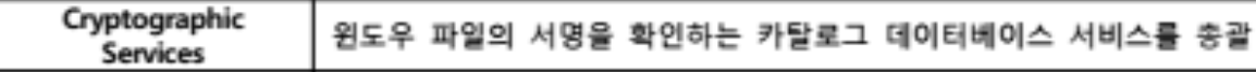 Cryptographic Service는 "윈도우 파일의 서명을 확인하는 카탈로그 데이터베이스 서비스를 총괄" 한다고 한다.