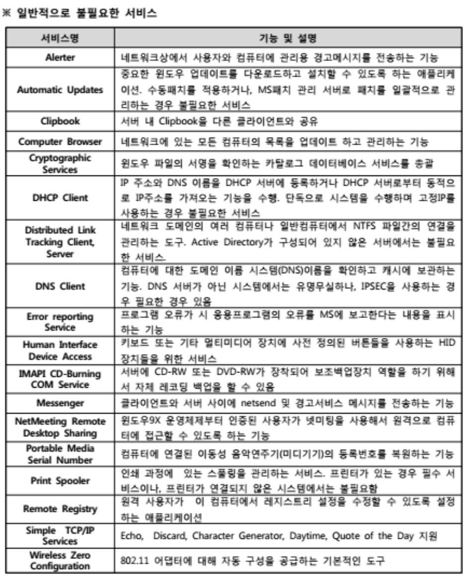 < Windows PC > : PC-04 : 불필요한 서비스 제거